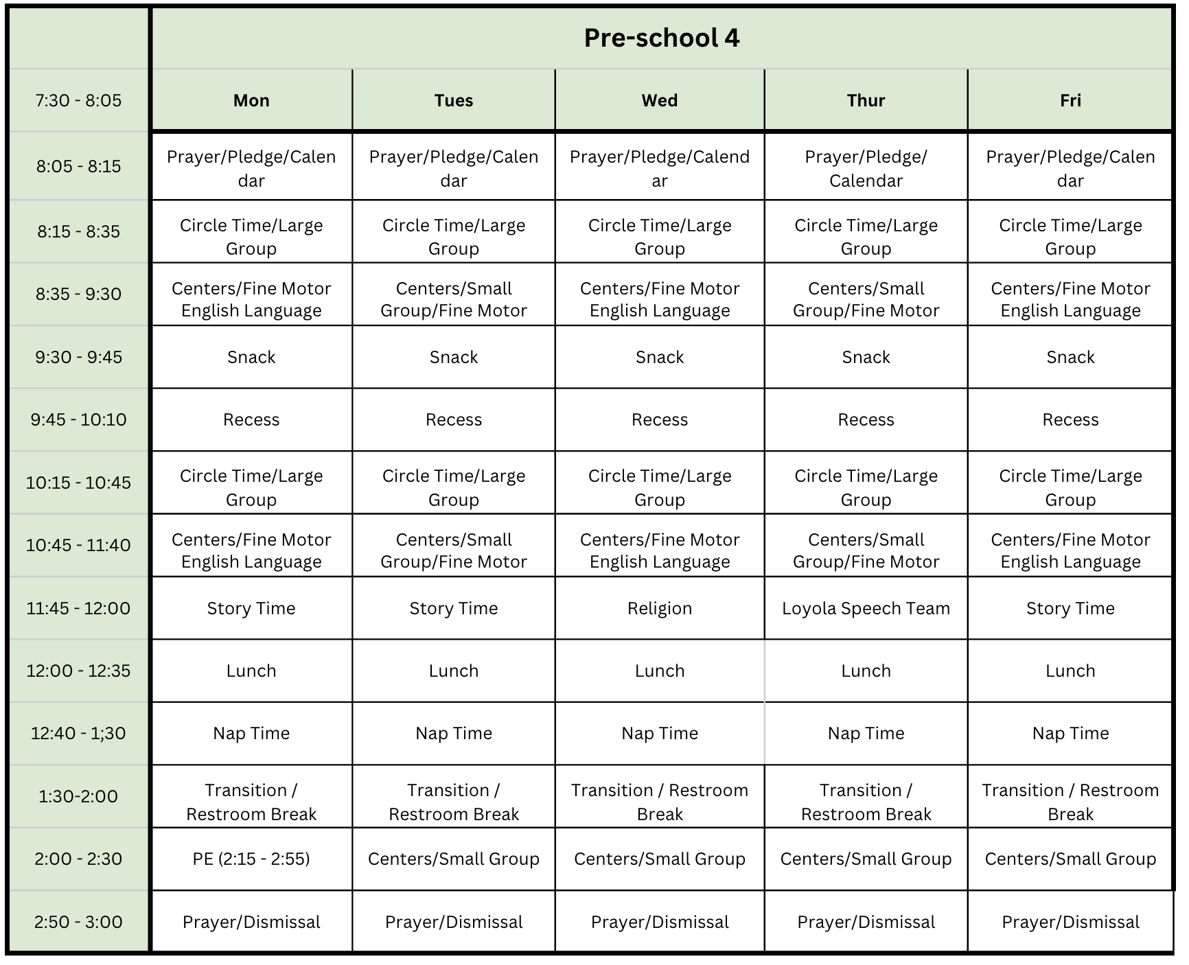 Please note that at Archbishop Borders School, the Pre-K 3-K classes are full day programs. Students do take a nap in the afternoon.