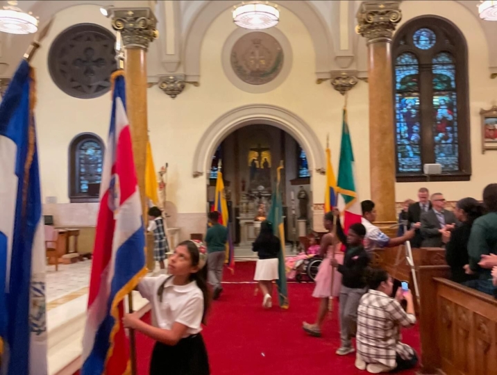 Archbishop Borders School community hosted the Archdiocese of Baltimore’s Hispanic Heritage Month mass at Sacred Heart of Jesus Church! Archbishop Lori, Fr. Ako, Fr. Bors, Deacon Manuel, Fr. Alipio, and Fr. Charles concelebrated the mass, with students serving as lectors, gift bearers, flag bearers, altar servers, and greeters. Over five other schools joined us in person and others viewed the mass virtually. Special thanks to the Office of Hispanic Ministry, Department of Catholic Schools, Mr. Omar, and Sra. Gray for preparing for and supporting this mass! The mass featured excellent musicians and dancers, and all present felt the joy of celebrating the diversity within our schools as we celebrated Hispanic Heritage!
